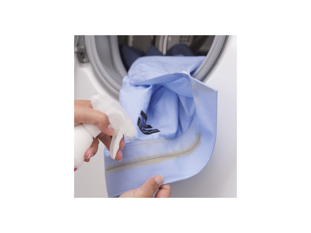 Pri farebných látkach najskôr vyskúšajte stálofarebnosť. Naneste dostatočné množstvo prípravku na škvrny, kým nie sú úplne pokryté. Votrite prípravok do škvŕn. Nechajte pôsobiť maximálne 5 minút, ale zabráňte zaschnutiu prípravku. Ošetrenú bielizeň ihneď vyperte v práčke s použitím hlavného programu a pridajte hlavný prací prostriedok. Ak periete ručne, pridajte do vody prací prostriedok.